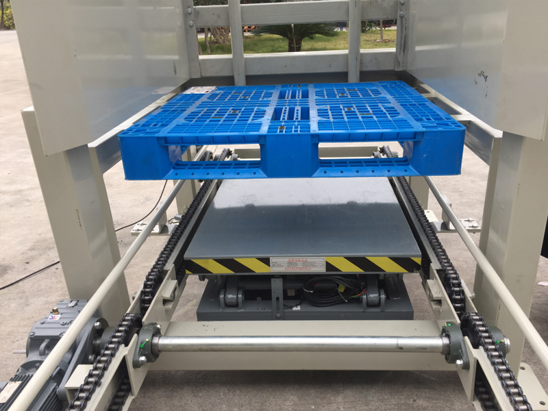 | 自動(dòng)托盤庫(kù)下面的電動(dòng)絲桿升降機(jī)構(gòu) | 自動(dòng)托盤庫(kù)下面的氣囊升降機(jī)構(gòu) |