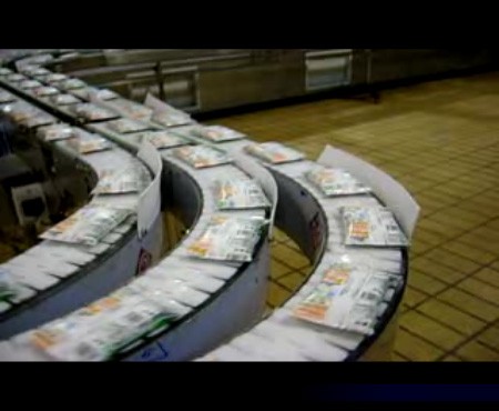 蒙牛袋裝奶三排式鏈板輸送機(jī)